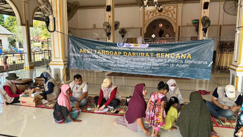22 Desember 2025 – Fakultas Kedokteran (FK) dan Fakultas Keperawatan (FKep) Universitas Syiah Kuala (USK) kembali melaksanakan kegiatan aksi tanggap darurat bencana melalui skrining cepat dan penanganan penyakit pasca bencana hidrometeorologi bagi masyarakat rentan di Aceh, pada Senin (22/12/2025). Kegiatan ini berlangsung di Desa Meunasah Raya, Kecamatan Meurah Dua, Kabupaten Pidie Jaya.