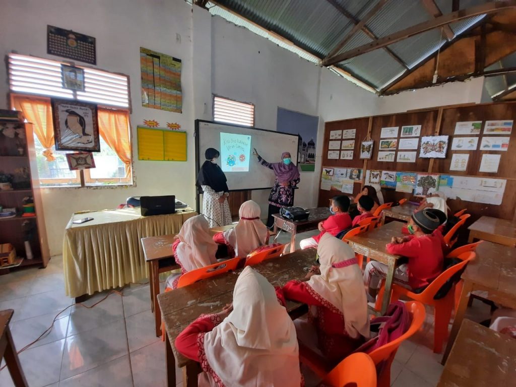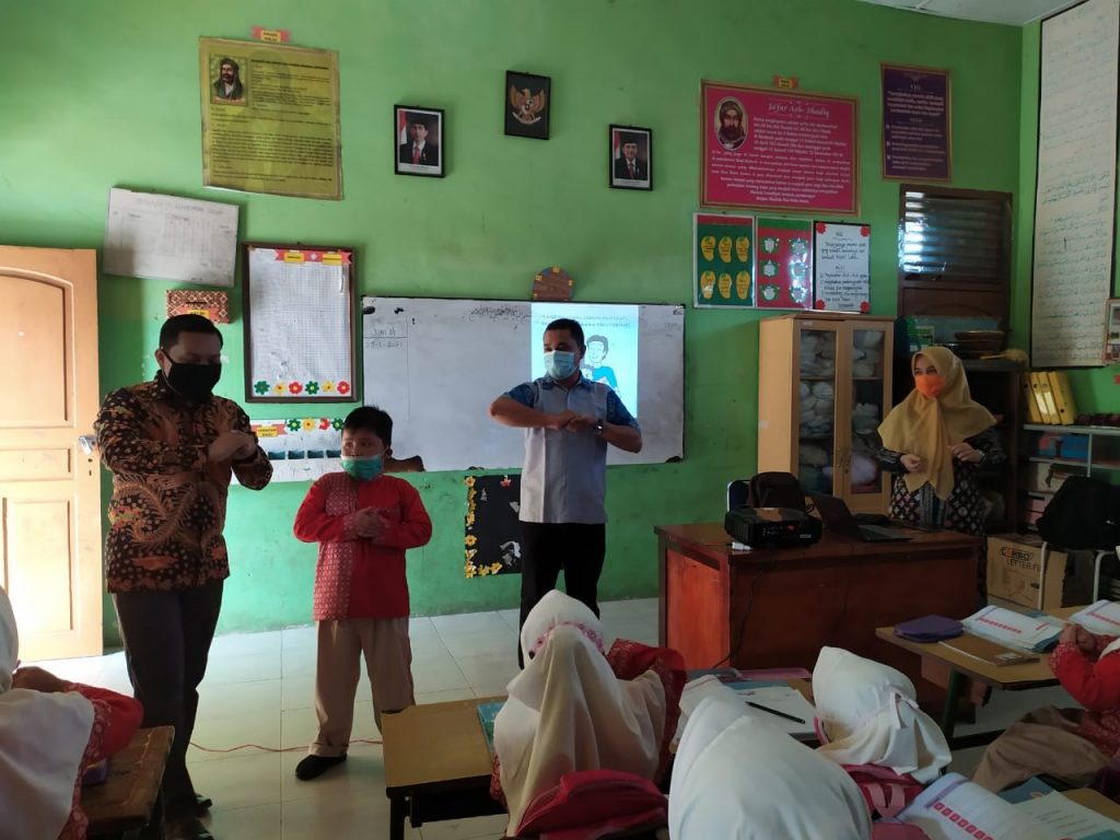 Banda Aceh. Dosen Fakultas Keperawatan Universitas Syiah Kuala mengadakan Pengabdian Kepada Masyarakat dengan tema “Penerapan Protokol Kesehatan 3M Untuk pencegahan Covid-19” di Madrasah Ibtidaiah Negeri 11 Banda Aceh yang dilaksanakan oleh 3 Timdari Fakultas Keperawatan. Tim 1 dengan judul “Penyuluhan 3M Pencegahan Covid-19”yang beranggotakan Ns. Sri Intan Rahayuningsih, M.Kep., Sp.Kep.An, Ns. Hasmila Sari, M.Kep, Sp. Kep. J dan Ns. Martina, M.Kep., Sp.Kep. J. Tim 2 dengan judul “Penguatan 3M Untuk Pencegahan Covid -19” yang beranggotakan Dr. Ns. Hilman Syarif, M.Kep., Sp. Kep. MB, Ns. Jufrizal, M.Kep dan Ns. Andara Maurissa, MNS serta tim 3 dengan judul “ Optimalisasi Upaya Pencegahan Penularan Covid-19 Melalui Edukasi 3M” dengan beranggotakan Ns. Nevi Hazrati, M. Kep, Ns. Elka Halifah, M.Kes dan Ns. Syarifa Atika, M.Kep. Kegiatan ini bertujuan untuk memberikan informasi dan peningkatan pengetahuan tentang cara menerapkan perilaku 3M yaitu memakai masker dengan cara yang benar, menjaga jarak dan mencuci tangan untuk pencegahan Covid-19.