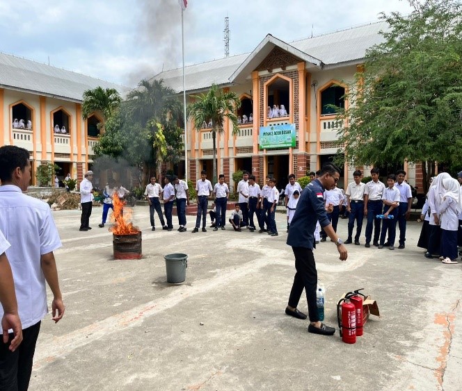 Tak hanya itu, kolaborasi ini juga menghadirkan edukasi dan demonstrasi penggunaan Alat Pemadam Api Ringan (APAR) yang dipandu langsung oleh perwakilan LKC Dompet Dhuafa Aceh. Kegiatan dilakukan di lapangan terbuka dan diikuti dengan antusias oleh para siswa yang berkesempatan mencoba menggunakan APAR secara langsung, pengalaman baru yang menambah wawasan mereka tentang keselamatan di lingkungan sekolah.