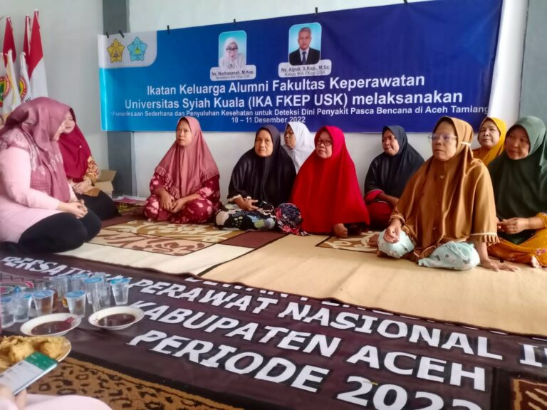 IKA-FKEP mengadakan Penyuluhan dan Pemeriksaan Kesehatan terkait Deteksi Dini Pasca Banjir di Aceh Tamiang pada tanggal 10-11 Desember 2022