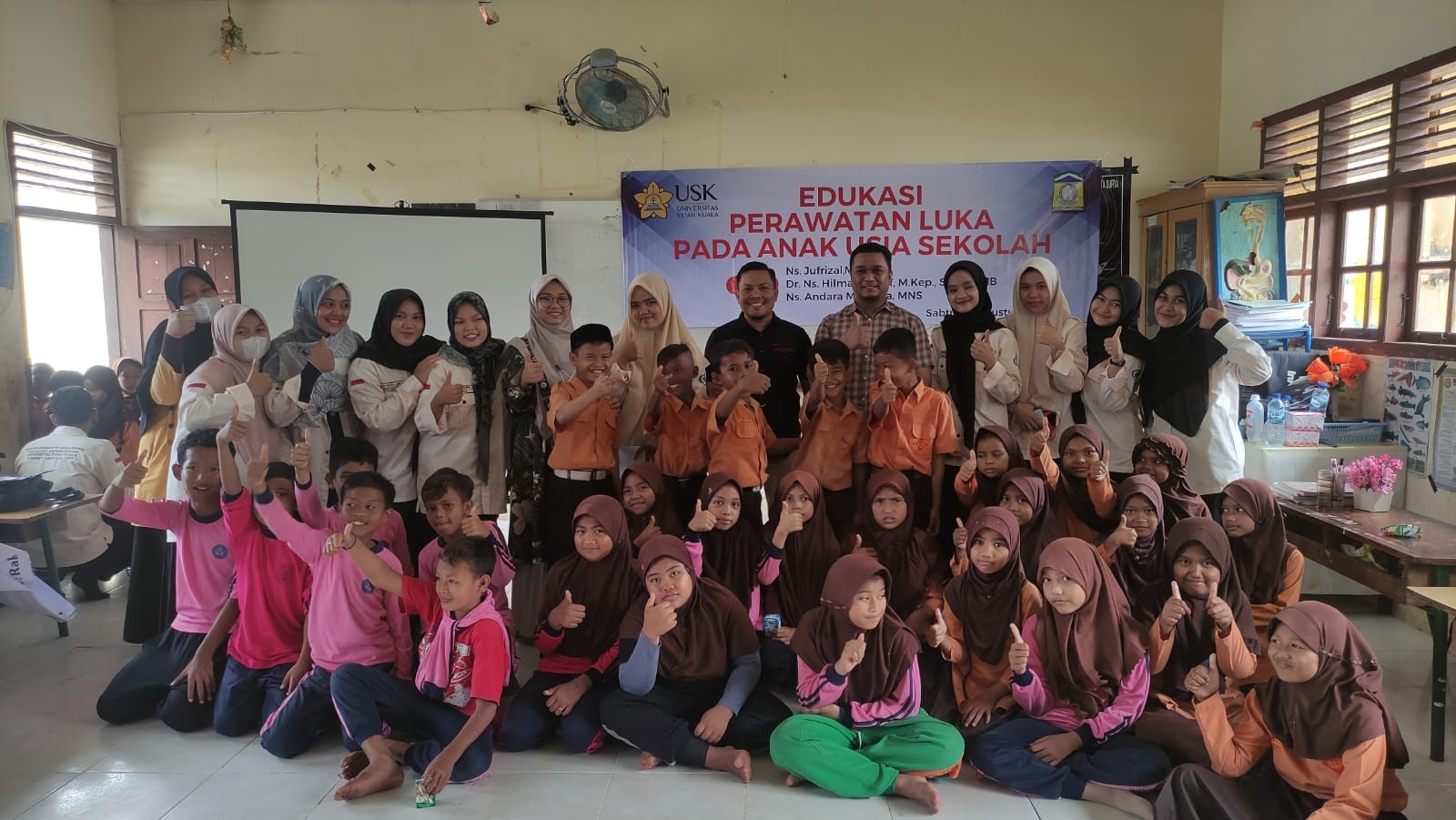 SISWA/I SD NEGERI COT PREH DIBERIKAN EDUKASI PERAWATAN LUKA OLEH DOSEN FAKULTAS KEPERAWATAN UNIVERSITAS SYIAH KUALA