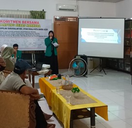 Acara diawali dengan pembukaan oleh moderator dari mahasiswi tim pengabdian, dilanjutkan dengan pembacaan ayat suci Al-Quran oleh mahasiswa KKN. Kemudian, Ketua pengabdian Ns. Dara Febriana, M.Sc., Ph.D menyampaikan sambutan pembuka. Dilanjutkan oleh Bapak Geuchik Ir. Eddi, yang dalam sambutannya mengatakan, “Inilah yang kami harapkan, mengapa harus melakukan pengabdian di tempat jauh sementara di lingkungan sendiri masih banyak yang perlu dibenahi.” Perwakilan dari Puskesmas Kopelma Darussalam dr. Reni Yusmita juga menyampaikan, “Mudah-mudahan projectnya lancar dan kami dari puskesmas juga bersyukur bisa berkolaborasi dengan tim pengabdian ini.”